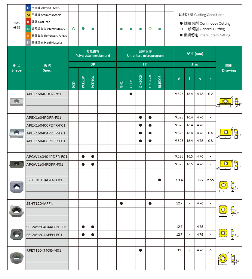 Suitable for use with insert: SE..1204/SE..12T3/AP..1604/RP..1204